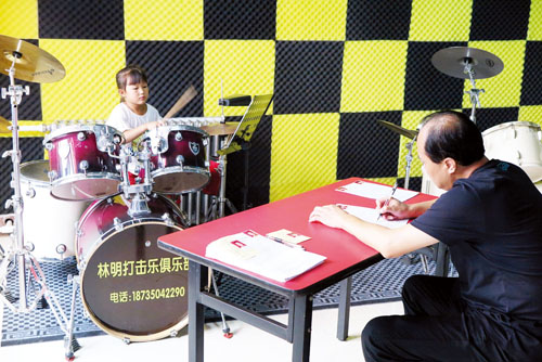 據(jù)了解,近年來,越來越多的少年兒童喜歡上打擊樂,林明架子鼓俱樂部的許多學(xué)員經(jīng)過不懈努力,均考取了不同級別的爵士鼓專業(yè)考級證書,該俱樂部也多次組織學(xué)員參加了中央電視臺和山西電視臺組織的少兒春晚演出活動,為推進我市社會藝術(shù)發(fā)展和提升城市文化品位作出了應(yīng)有的貢獻。(魯明強 攝影報道)