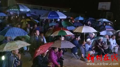 演出期間,記者觀察到,每場(chǎng)演出前,村民們都早早地搬凳子帶椅子到戲院等著看戲,十里八鄉(xiāng)的群眾也接踵而至。特別是最后一場(chǎng)戲晚上八點(diǎn)開(kāi)演,雨提前半小時(shí)下起來(lái)都擋不住村民們趕來(lái)看戲的腳步,戲院里站的、坐的、蹲的……四處都是人。