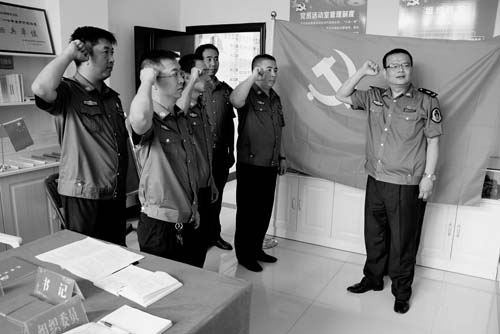 針對(duì)支隊(duì)人員少、任務(wù)重的困難,同時(shí)又面臨機(jī)構(gòu)改革的實(shí)際,2018年,支隊(duì)提出“看齊追隨鑄隊(duì)魂,提高能力抓效率,正風(fēng)肅紀(jì)樹(shù)形象,健全機(jī)制抓監(jiān)管”的總體工作思路,充分發(fā)揮支部的帶頭引領(lǐng)作用。首先是強(qiáng)化組織建設(shè)。支部設(shè)書(shū)記、副書(shū)記、組織委員、宣傳委員、紀(jì)檢委員,另設(shè)兩個(gè)黨小組,實(shí)行矩陣式工作機(jī)制。人人有職責(zé)、有任務(wù)、有目標(biāo)。其次是落實(shí)重大事項(xiàng)支部集體研究的制度。支隊(duì)重大決策事項(xiàng)、重大執(zhí)法案件等都要經(jīng)支委集體研究決定后執(zhí)行。第三是發(fā)揮黨員帶頭作用,帶動(dòng)全隊(duì)工作。支隊(duì)協(xié)勤人員和借調(diào)人員多,通過(guò)充分發(fā)揮黨員的先鋒模范作用,帶動(dòng)全隊(duì)時(shí)刻保持昂揚(yáng)的奮進(jìn)姿態(tài)。