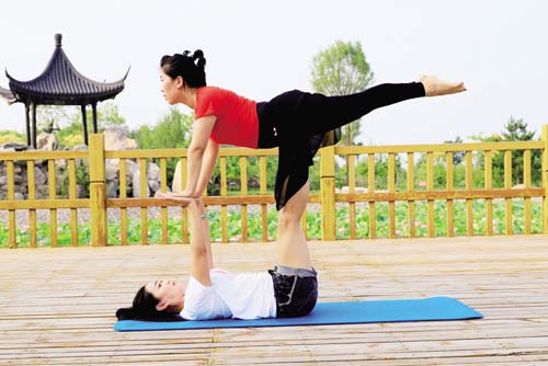 8月1日,天牙山風(fēng)景區(qū)荷花盛開,瑜伽達(dá)人趁著這美景正在晨練。