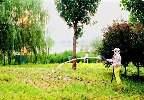 8月5日,河曲縣綠化工正在利用水泵汲取黃河水澆灌綠植。連日來,持續(xù)的高溫晴熱天氣,導(dǎo)致綠化植物普遍出現(xiàn)旱情。為此,該縣動用水車、抽水泵等設(shè)備,多方調(diào)水,加大澆灌力度,推進抗旱保綠。(賈金理 攝)