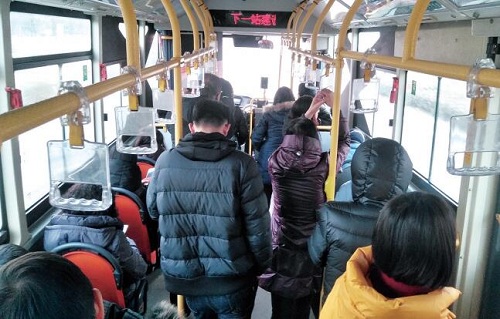 近日,我市發(fā)布重污染天氣橙色預(yù)警,忻州城區(qū)機(jī)動車實行單雙號限行。限行期間,城市公交車加大運營力度,為出行市民提供免費服務(wù)。圖為1月10日上午,306路公交車上內(nèi)景。魯明強(qiáng) 攝