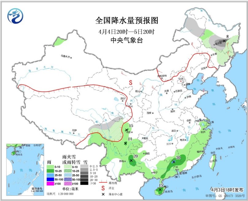 受東北低渦影響,4月3日夜間至5日,內(nèi)蒙古東北部、黑龍江、吉林中北部等地有中到大雪,局地暴雪。此外,4月3日夜間至4日,青海西部和東部、川西高原等地的部分地區(qū)有雨雪天氣。