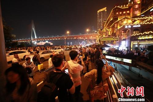 圖為“五一”小長假期間,游客在重慶洪崖洞景區(qū)觀光游玩。中新社發(fā) 蘇自剛 攝