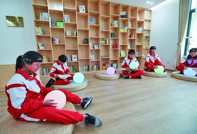 在浙江省嘉興市兒童青少年心理健康服務總站,學生們在體驗“腦波球”。新華社發(fā)