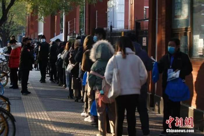 資料圖:公務(wù)員考試考場外,工作人員核驗(yàn)考生信息。 中新社記者 蔣啟明 攝