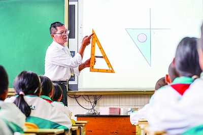 堅守三尺講臺三十九載的山村教師楊紅軍在為學生授課。新華社發(fā)
