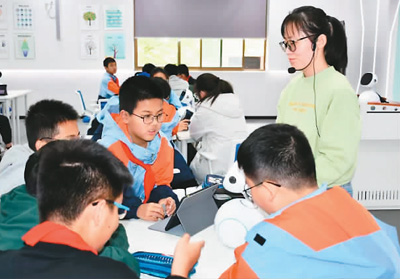 隨著大規(guī)模應(yīng)用的持續(xù)推進(jìn),中國教育的優(yōu)質(zhì)數(shù)字資源覆蓋面顯著提升。近年來,中國著眼縮小區(qū)域差距,實(shí)施“慕課西部行計(jì)劃2.0”,提供19.8萬門慕課及定制化課程,服務(wù)西部高校學(xué)生5.4億人次。立足推進(jìn)鄉(xiāng)村振興,2023年啟動(dòng)首期數(shù)字支教創(chuàng)新試驗(yàn),為1.4萬名鄉(xiāng)村中小學(xué)生,送去科普、藝術(shù)類等課程2500多節(jié)。如今,位于上海的華東師范大學(xué)志愿者,可以通過平臺(tái)與幾千里之外的云南省的小學(xué)生,共同體驗(yàn)傳統(tǒng)文化、感知科技前沿、交流內(nèi)心世界。