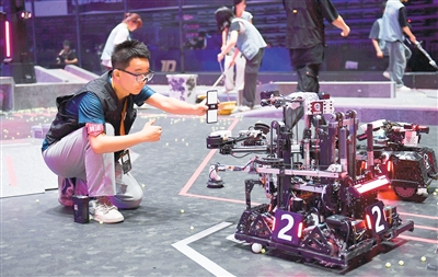 5月21日至5月25日,全國大學(xué)生機(jī)器人大賽——RoboMaster2025機(jī)甲大師超級(jí)對(duì)抗賽·區(qū)域賽(中部賽區(qū))在湖南省長沙市舉行。圖為合肥工業(yè)大學(xué)蒼穹戰(zhàn)隊(duì)隊(duì)員在比賽間隙調(diào)試機(jī)器人。新華社記者 陳振海攝