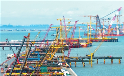 廈金大橋(廈門段)海上橋梁大規(guī)模裝配化施工現(xiàn)場(chǎng)。新華社記者 魏培全攝