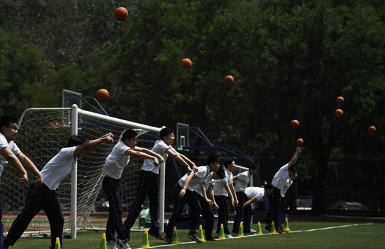 5月28日,北京,第十八中學(xué)學(xué)生備考中考體育考試。視覺(jué)中國(guó)供圖