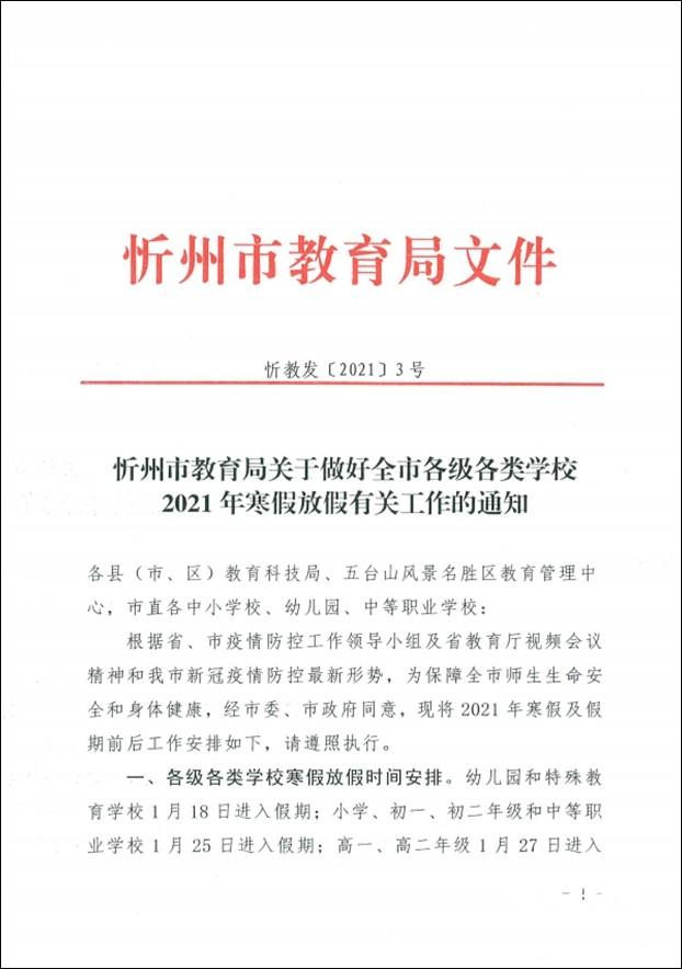根據(jù)省、市疫情防控工作領(lǐng)導(dǎo)小組及省教育廳視頻會(huì)議精神和我市新冠疫情防控最新形勢(shì),為保障全市師生生命安全和身體健康;經(jīng)市委、市政府同意,現(xiàn)將2021年寒假及假期前后工作安排如下,請(qǐng)遵照?qǐng)?zhí)行。