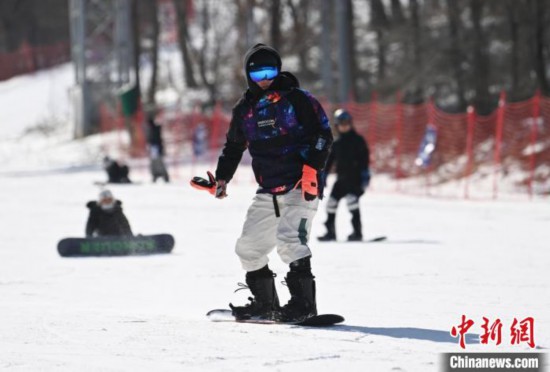 滑雪愛(ài)好者在吉林長(zhǎng)春蓮花山滑雪場(chǎng)滑雪。(資料圖) 張瑤 攝