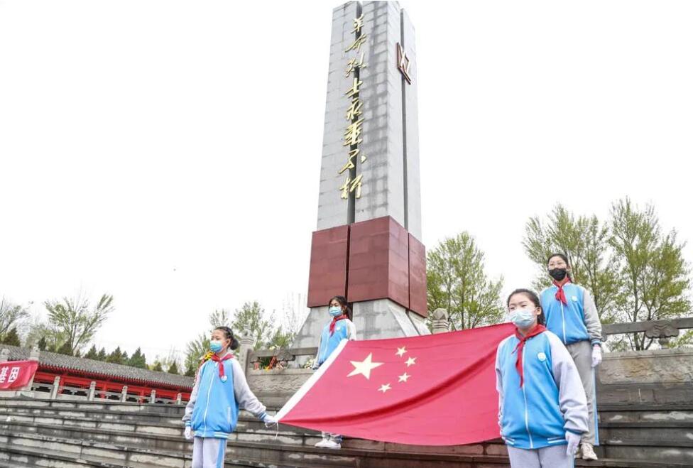 “我們是共產(chǎn)主義接班人,繼承革命先輩的光榮傳統(tǒng)……”少先隊員清脆的歌聲清遠悠揚,深切表達著對先烈們的悼念、緬懷之情。
