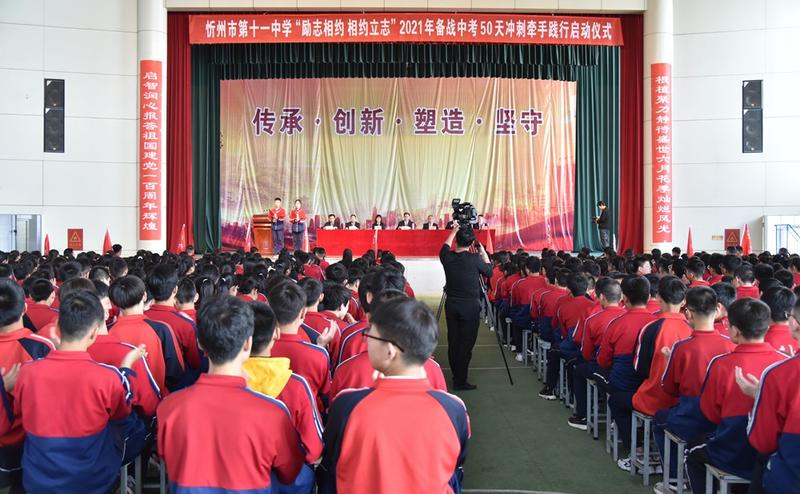 又是一年五月,陽光明媚,又逢“五四”,血脈僨張。在五月的花海中擁抱青春的時代,在初升的太陽下點燃生命的未來。為進(jìn)一步激發(fā)初三師生堅定目標(biāo)、奮力拼搏、沖刺中考的雄心壯志,5月4日上午,忻州市第十一中學(xué)初三年級全體師生在學(xué)校文體藝苑舉行了“勵志相約、相約立志”2021屆備戰(zhàn)中考50天沖刺牽手踐行啟動儀式,校長張云長、黨支部書記趙智剛、學(xué)校領(lǐng)導(dǎo)、部分家長代表共同見證了這一振奮人心的時刻。