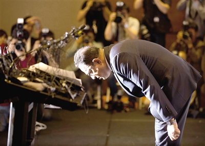5月2日,在韓國首爾,利潔時韓國子公司負(fù)責(zé)人阿塔爾·薩夫達(dá)爾在記者會上鞠躬道歉。 英國日用品公司利潔時韓國子公司2日在首爾召開記者會,就“加濕器殺菌劑致死事件”向韓國國民道歉并提出賠償方案。2011年韓國有多人因罹患不明原因的肺病而死亡,一度在韓國社會引發(fā)恐慌。韓國保健福祉部疾病管理本部經(jīng)調(diào)查后認(rèn)定,加濕器殺菌劑是導(dǎo)致不明肺病的元兇。 新華社/美聯(lián)