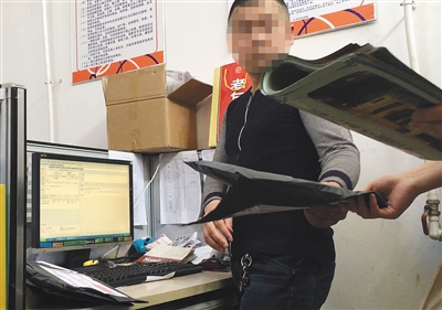 4月21日,圓通快遞太原長風分公司。一名負責人教記者如何做空包裹,同時遞給記者一疊廣告紙,建議做空包時放入。 新京報記者 大路 攝