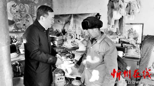農(nóng)行忻州分行黨委書記、 行長白建斌為貧困戶送去慰問品。 履行責任扎實推進金融扶貧工作