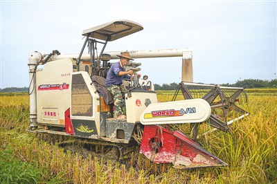 我國糧食產(chǎn)量連續(xù)6年保持在1.3萬億斤以上,與農(nóng)業(yè)現(xiàn)代化和土地充分利用密不可分。圖為今年秋季一名農(nóng)民駕駛收割機(jī)在海南海口龍華區(qū)龍泉鎮(zhèn)新江村收割晚稻。新華社記者 蒲曉旭攝