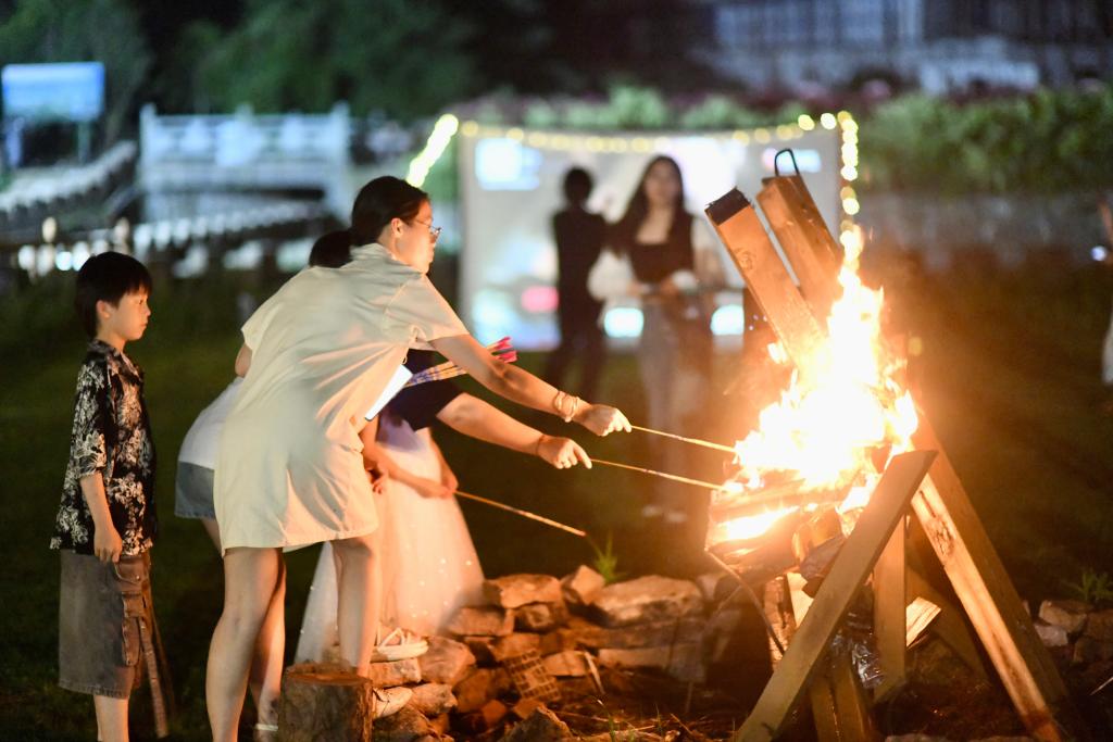 游客在寧??h桑洲鎮(zhèn)高山露營(yíng)基地度過(guò)端午假期。(尤才彬 攝)