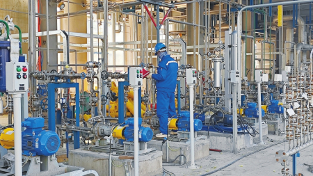 “安全生產(chǎn)天數(shù)1301天,儀表調(diào)試天數(shù)78天。”走進(jìn)調(diào)度指揮中心,大屏幕上實(shí)時(shí)顯示著建設(shè)進(jìn)度和施工現(xiàn)場(chǎng)實(shí)時(shí)畫面,同德科創(chuàng)材料有限公司負(fù)責(zé)人樊尚斌信心十足地說(shuō):“歷時(shí)三年多的建設(shè),目前甲醇制氫、空壓制氮、導(dǎo)熱油爐等主項(xiàng)設(shè)備全部安裝完畢,已全面進(jìn)入管道安裝收尾和試壓高峰階段,最近爭(zhēng)分奪秒搶抓工期,確保按期完工?!?/p>