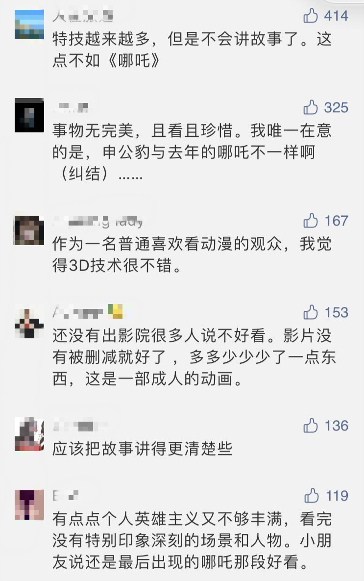 中新經(jīng)緯記者注意到,《姜子牙》上映后,網(wǎng)絡出現(xiàn)了不同聲音,有網(wǎng)友表示“特技越來越多,但是不會講故事了”。也有網(wǎng)友力挺:“事物無完美,且看且珍惜”。
