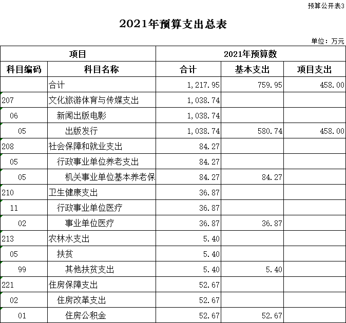 2、項(xiàng)目支出120萬元,比2020年減少15萬元。主要為取消《文化旅游》周刊經(jīng)費(fèi)15萬元。廣告收入專項(xiàng)經(jīng)費(fèi)120萬元,主要用于辦公費(fèi)、維修費(fèi)、水電費(fèi)、差旅費(fèi)、采暖費(fèi)、郵電費(fèi)等日常開支。