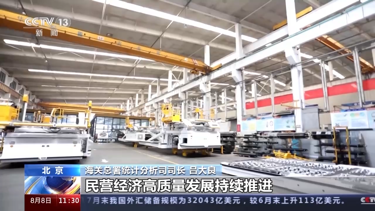 海關(guān)總署統(tǒng)計分析司司長 呂大良:今年以來,民營企業(yè)進出口增速高于整體,占比進一步提升,參與外貿(mào)的民營企業(yè)數(shù)量不斷增加,前7個月達到47.8萬家,同比多了3.6萬家。近期,關(guān)于促進民營經(jīng)濟發(fā)展壯大的意見發(fā)布實施,民營經(jīng)濟高質(zhì)量發(fā)展持續(xù)推進,民營企業(yè)的國際競爭力將進一步提高。