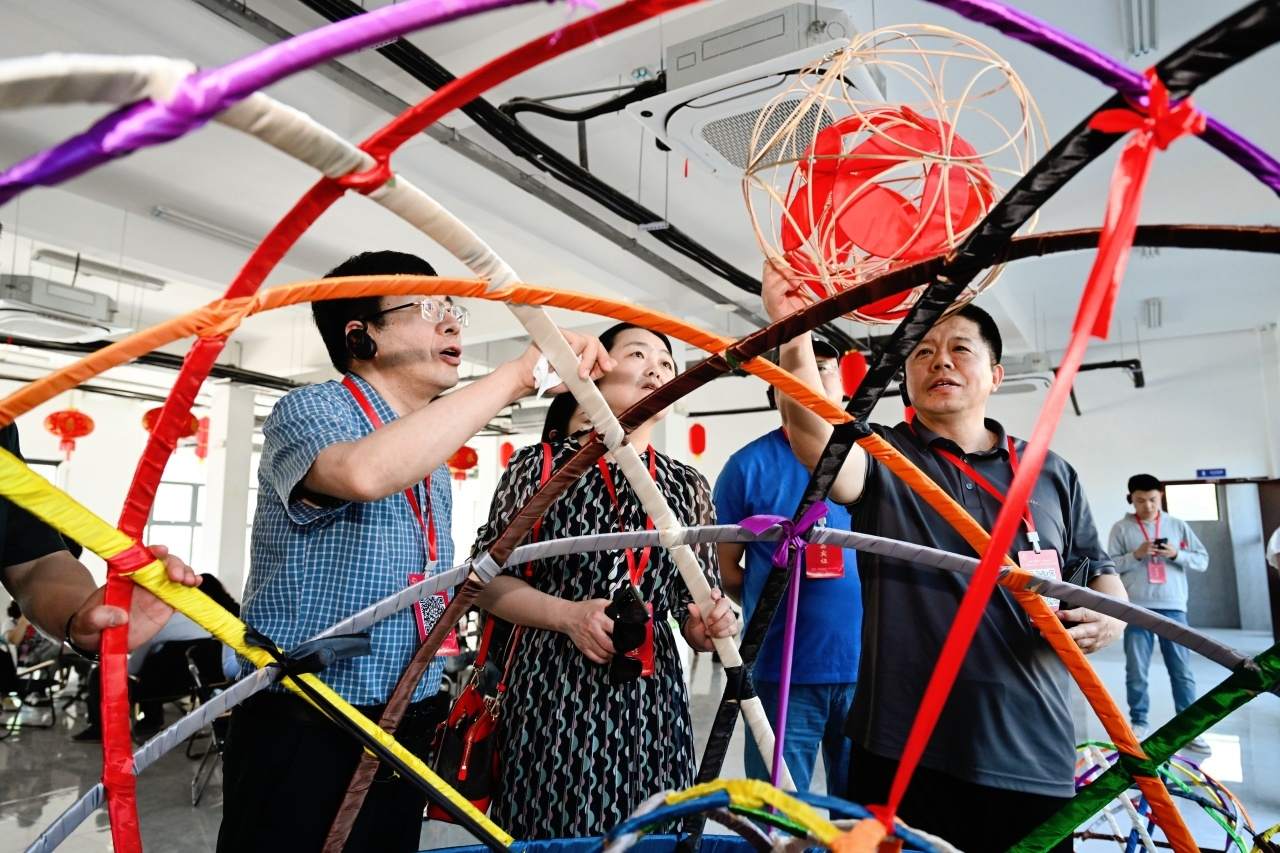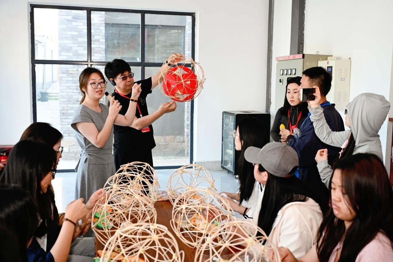 在“滾燈”文化公園,記者團(tuán)親身感受了一把“潮鄉(xiāng)”的“滾燈”藝術(shù)的魅力?!皾L燈”源自江南一帶的民間節(jié)日慶典,融合了舞蹈、技巧與體育精髓,愛好者展示給記者們的金港村“滾燈”,其制作工藝之考究讓大伙都嘖嘖贊嘆。