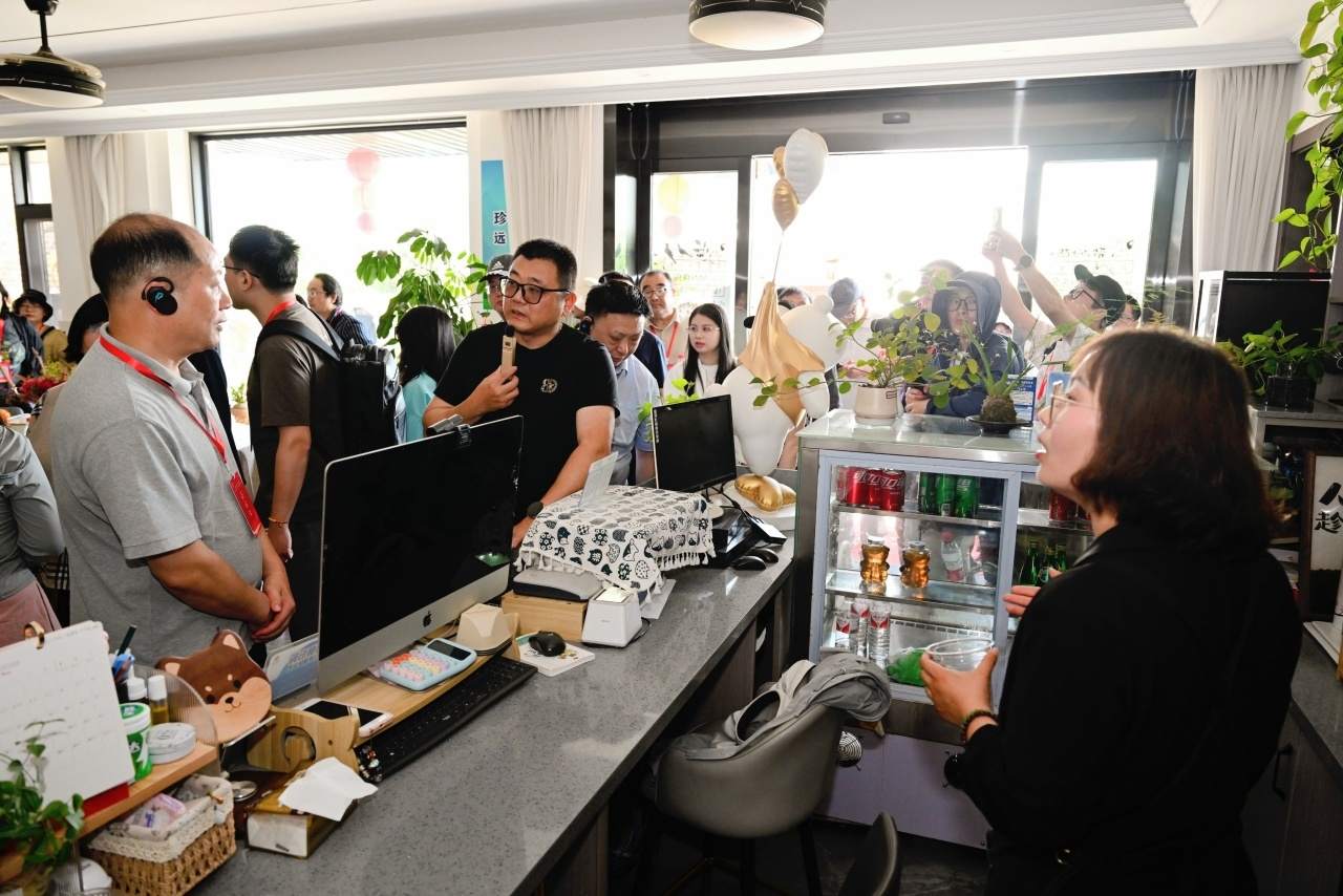 村里蕓溪民宿的“潮趣”營(yíng)地,讓記者們見識(shí)到了“潮鄉(xiāng)”傳統(tǒng)之外時(shí)尚、新銳一面。民宿主理人是80后返鄉(xiāng)青年宋曉燕,在“家門口”實(shí)現(xiàn)了開民宿的夢(mèng)想?!笆|溪”背靠浙北最美公路翁金線、面朝錢塘江,如今,有了這“潮趣”營(yíng)地,就能讓客人們想安靜時(shí)要一間房、泡一壺茶;愛熱鬧的,呼朋喚友一起燒烤、露營(yíng),共赴“江岸野趣”;或是帶著小朋友來摘野菜、喂小動(dòng)物,與大自然來一次親密接觸……宋曉燕將“蕓溪”經(jīng)營(yíng)成了具有鄉(xiāng)村煙火氣、人情味的驛站,讓南來北往的客人們?cè)谶@里找到了“回家”的感覺。已是“銀宿”級(jí)別的“蕓溪”,因?yàn)闃O好的口碑,目前客房訂單已排到“五一”假期。