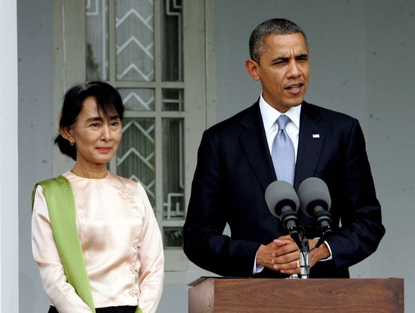 資料:2012年11月19日 ,美國總統奧巴馬(右)會見緬甸全國民主聯盟主席昂山素季后答記者問。