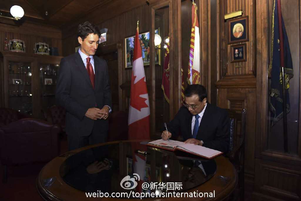 新華網(wǎng)北京9月23日電 當(dāng)?shù)貢r(shí)間22日,李克強(qiáng)總理與加拿大總理特魯多舉行會(huì)談,確認(rèn)正式啟動(dòng)中加總理年度對(duì)話機(jī)制。會(huì)談中,兩國(guó)總理就中加關(guān)系和共同關(guān)心的地區(qū)國(guó)際問(wèn)題進(jìn)行了廣泛深入的交談。這是李克強(qiáng)和特魯多在不到一個(gè)月時(shí)間里第二次會(huì)晤。特魯多本月初剛剛訪華。(據(jù)新華社“新華國(guó)際”微博報(bào)道)