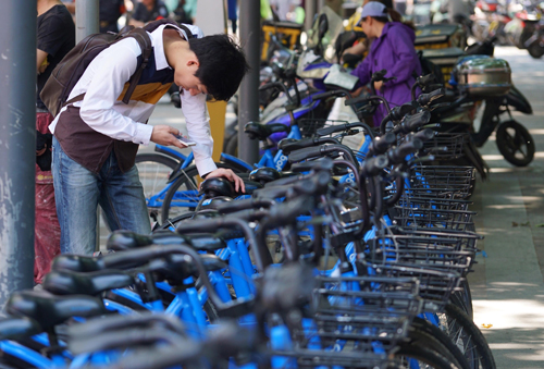 資料圖片:一位市民準(zhǔn)備利用共享單車出行。新華社記者 季春鵬 攝