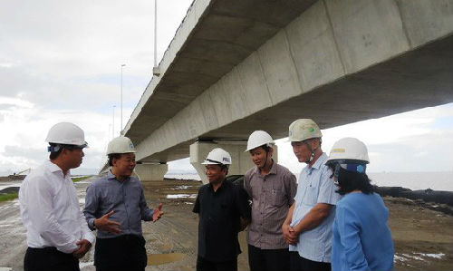 越南交通運(yùn)輸部官員視察大橋建設(shè)項(xiàng)目。(圖片源自越南媒體)