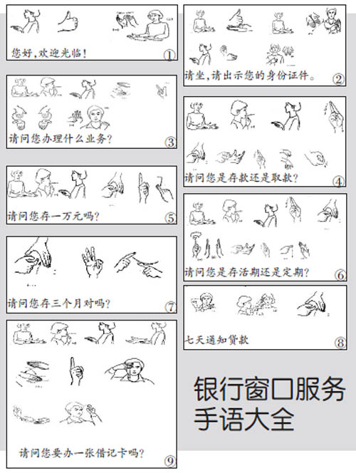 策劃人語 聾啞人辦理銀行業(yè)務(wù),無疑是一件困難的事情,他們擔(dān)心辦理時溝通困難,還往往會找個人陪著一起去。不過如果銀行的人員會手語,這些就不是問題了。在交通銀行忻州市分行營業(yè)部的員工人人都會基本的手語,每當(dāng)特殊客戶前來銀行辦理業(yè)務(wù),都會感到十分的暖心。