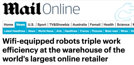 8月2日,英國《每日郵報》發(fā)表題為《裝載無線網(wǎng)絡(luò)的機器人將中國最大在線零售商倉庫的效率翻了三倍》的文章。文章介紹了日前投入使用的中國最大機器人倉庫,已有超過百臺機器人在倉庫內(nèi)運行。