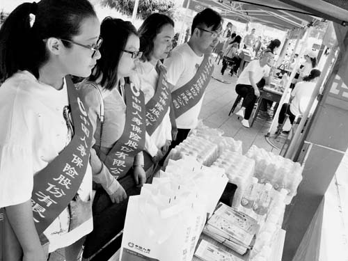 在活動現(xiàn)場,忻州分公司設立了中國人壽愛心助考服務站(點),為過往的學生、家長提供了休息的桌、椅,發(fā)放了礦泉水以及打擊非法集資、防范金融風險宣傳手冊,并為他們提供了保險咨詢服務。蘇海霞 攝