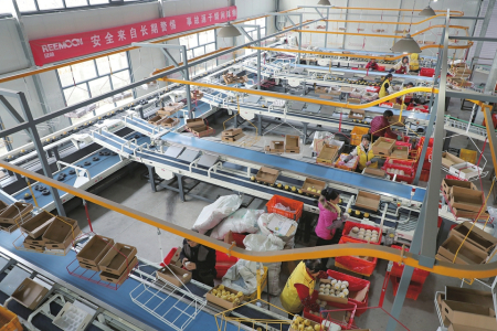 11月14日,原平市同川鎮(zhèn)劉河底村同川梨果倉儲(chǔ)配送中心自動(dòng)化選果車間內(nèi),工人們正在篩選、包裝產(chǎn)品。近年來,該市發(fā)揮“一村一品”地理優(yōu)勢,深耕梨果產(chǎn)業(yè)鏈,建設(shè)與現(xiàn)代農(nóng)業(yè)產(chǎn)業(yè)發(fā)展相適應(yīng)的農(nóng)產(chǎn)品冷鏈物流體系,助力當(dāng)?shù)剞r(nóng)產(chǎn)品對(duì)外銷售。