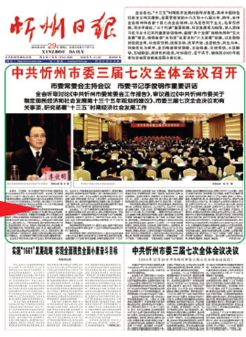 中國共產(chǎn)黨忻州市第三屆委員會第七次全體會議于12月28日在忻州召開。全會聽取討論了《中共忻州市委常委會工作報告》,審議通過了《中共忻州市委關于制定國民經(jīng)濟和社會發(fā)展第十三個五年規(guī)劃的建議》,研究部署了“十三五”時期經(jīng)濟社會發(fā)展工作。