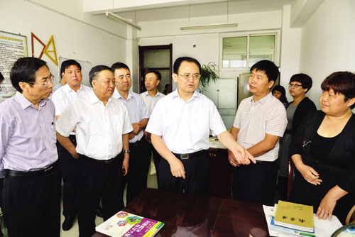 本報(bào)訊(記者任逢春)帶著溫馨祝福,送去濃濃關(guān)懷。在第32個(gè)教師節(jié)來(lái)臨之際,9月9日,市委書記李俊明帶領(lǐng)市直有關(guān)部門負(fù)責(zé)人深入城鄉(xiāng)學(xué)校,向奮戰(zhàn)在一線的教育工作者致以節(jié)日祝賀和問(wèn)候,并就基礎(chǔ)教育工作進(jìn)行調(diào)研。李俊明強(qiáng)調(diào),教育事業(yè)關(guān)系千家萬(wàn)戶,關(guān)系子孫后代,要堅(jiān)持改革、規(guī)范、發(fā)展,在促進(jìn)教育的均衡發(fā)展與人的全面發(fā)展上下功夫,在著力解決因教致貧、因教返貧,斬?cái)嘟逃毨ТH傳遞上下功夫,為我市全面脫貧、全面小康提供智力支持和人才保障。市委常委梁潔等一同調(diào)研慰問(wèn)。