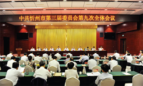 圖為中共忻州市第三屆委員會(huì)第九次全體會(huì)議會(huì)場(chǎng)。(本報(bào)記者 劉紀(jì)森 攝)