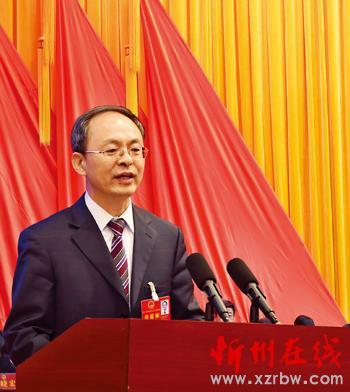 ??市長(zhǎng)鄭連生作政府工作報(bào)告。馮曉磊 攝 本報(bào)訊(記者 王金華)忻州市第四屆人民代表大會(huì)第二次會(huì)議3月20日在忻開(kāi)幕。忻州市人民政府市長(zhǎng)鄭連生向大會(huì)作政府工作報(bào)告時(shí)指出,轉(zhuǎn)型綜改、創(chuàng)新驅(qū)動(dòng),順應(yīng)發(fā)展潮流,符合忻州實(shí)際,是忻州振興崛起、全面脫貧、全面小康的制勝之道、光明大道。讓我們更加緊密地團(tuán)結(jié)在以習(xí)近平同志為核心的黨中央周?chē)?,在市委的領(lǐng)導(dǎo)下,全面實(shí)施“1661”發(fā)展戰(zhàn)略,緊緊扭住發(fā)展第一要?jiǎng)?wù),認(rèn)真堅(jiān)持“產(chǎn)業(yè)第一、項(xiàng)目至上、企業(yè)為重、服務(wù)為本”,忠誠(chéng)擔(dān)當(dāng)、開(kāi)拓創(chuàng)新、攻堅(jiān)克難、奮發(fā)圖強(qiáng)、不忘初心、繼續(xù)前進(jìn),以實(shí)際行動(dòng)和嶄新成績(jī)迎接黨的十九大勝利召開(kāi)! 20日,今年忻州的第一場(chǎng)春雨如期而至。泛華酒店千人會(huì)堂內(nèi)氣氛莊嚴(yán)熱烈,主席臺(tái)帷幕中央國(guó)徽高懸,十面紅旗分列兩側(cè)。300多名人大代表肩負(fù)全市人民重托出席盛會(huì),認(rèn)真履行憲法和法律賦予的神圣職權(quán)。 大會(huì)主席團(tuán)執(zhí)行主席賈雪峰主持大會(huì)。大會(huì)主席團(tuán)執(zhí)行主席李俊明、鄭連生、李樹(shù)東、魏廣才、王繼明、程興利、張?zhí)m軍在主席臺(tái)執(zhí)行席就座。 王珍、劉鋼柱、陳義青、王建廷、范晉昌、范波濤、王志東和大會(huì)主席團(tuán)成員在主席臺(tái)就座。 忻州市四屆人大二次會(huì)議應(yīng)出席代表350人,實(shí)出席329人,缺席21人,符合法定人數(shù)。 上午9時(shí),賈雪峰宣布:忻州市第四屆人民代表大會(huì)第二次會(huì)議開(kāi)幕!會(huì)場(chǎng)全體起立,奏國(guó)歌。 根據(jù)會(huì)議議程,市長(zhǎng)鄭連生向大會(huì)作政府工作報(bào)告。報(bào)告共分三部分:一、2016年工作回顧;二、2017年工作安排;三、改進(jìn)政府工作。 鄭連生說(shuō),過(guò)去的一年,面對(duì)艱巨繁重的工作任務(wù)和經(jīng)濟(jì)持續(xù)下行的困難局面,我們深入學(xué)習(xí)貫徹習(xí)近平總書(shū)記系列重要講話精神,認(rèn)真貫徹省委“一個(gè)指引、兩手硬”重大思路和要求,按照省政府轉(zhuǎn)型綜改系列決策部署,全面實(shí)施市委“1661”發(fā)展戰(zhàn)略,堅(jiān)持“產(chǎn)業(yè)第一、項(xiàng)目至上、企業(yè)為重、服務(wù)為本”,立足自身努力,保持進(jìn)取追求,統(tǒng)籌推進(jìn)穩(wěn)增長(zhǎng)、促改革、調(diào)結(jié)構(gòu)、惠民生、防風(fēng)險(xiǎn)等各項(xiàng)工作,在克服重重困難的情況下,取得了來(lái)之不易的成績(jī)。 鄭連生從經(jīng)濟(jì)增長(zhǎng)緩中趨穩(wěn)、重點(diǎn)工作有力推進(jìn)、脫貧攻堅(jiān)精準(zhǔn)發(fā)力、致力改善民生事業(yè)、著力改善忻州形象、自身建設(shè)明顯加強(qiáng)等六個(gè)方面回顧了過(guò)去一年的政府工作。 鄭連生強(qiáng)調(diào),我們清醒地知道,當(dāng)前我市還存在許多深層次的問(wèn)題。特別是傳統(tǒng)產(chǎn)業(yè)轉(zhuǎn)型升級(jí)尚處于破題階段,新興產(chǎn)業(yè)發(fā)展緩慢,核心競(jìng)爭(zhēng)力遠(yuǎn)未形成,重點(diǎn)領(lǐng)域改革仍然滯后,尤其是還遠(yuǎn)不能適應(yīng)新常態(tài)的要求。歸結(jié)于一點(diǎn),就是在本輪經(jīng)濟(jì)的深度調(diào)整中,如何化危為機(jī),發(fā)揮后發(fā)優(yōu)勢(shì),實(shí)現(xiàn)轉(zhuǎn)型跨越仍在探索之中。 鄭連生說(shuō),2017年,是推進(jìn)供給側(cè)結(jié)構(gòu)性改革和轉(zhuǎn)型綜改的深化之年,是走出經(jīng)濟(jì)困難局面的攻堅(jiān)之年。主要預(yù)期指標(biāo)是:GDP增長(zhǎng)5.5%左右,全社會(huì)固定資產(chǎn)投資增長(zhǎng)5%,社會(huì)消費(fèi)品零售總額增長(zhǎng)7%左右,一般公共預(yù)算收入下降3.7%,城鄉(xiāng)居民人均可支配收入分別增長(zhǎng)6.5%左右和6.5%以上,居民消費(fèi)價(jià)格漲幅控制在3%左右,城鎮(zhèn)新增就業(yè)2.9萬(wàn)人,城鎮(zhèn)登記失業(yè)率控制在4.2%以內(nèi)。 約束性指標(biāo)是:資源節(jié)約方面,萬(wàn)元GDP能耗、萬(wàn)元GDP二氧化碳排放量、萬(wàn)元GDP用水量,按省下達(dá)任務(wù)執(zhí)行。環(huán)境質(zhì)量方面,PM2.5濃度下降3.5%、空氣質(zhì)量?jī)?yōu)良天數(shù)比例為72.4%(265天)、達(dá)到或好于Ⅲ類(lèi)水體比例為78.57%、劣V類(lèi)水體比例為0,化學(xué)需氧量、氨氮、二氧化硫、氮氧化物排放量等其他4項(xiàng)約束性指標(biāo),按省下達(dá)任務(wù)執(zhí)行。民生改善方面,農(nóng)村貧困人口脫貧人數(shù)11.9萬(wàn)人,城鎮(zhèn)棚戶區(qū)住房改造3830套。 鄭連生說(shuō),2017年要重點(diǎn)做好十個(gè)方面的工作:一是切實(shí)發(fā)揮轉(zhuǎn)型綜改的牽引作用,著力推動(dòng)產(chǎn)業(yè)結(jié)構(gòu)優(yōu)化升級(jí);二是大力實(shí)施創(chuàng)新驅(qū)動(dòng)戰(zhàn)略,提升企業(yè)的核心競(jìng)爭(zhēng)力;三是深化供給側(cè)結(jié)構(gòu)性改革,構(gòu)建多元現(xiàn)代產(chǎn)業(yè)體系;四是不斷引深項(xiàng)目建設(shè)攻堅(jiān)戰(zhàn),切實(shí)增強(qiáng)發(fā)展后勁;五是堅(jiān)決打贏脫貧攻