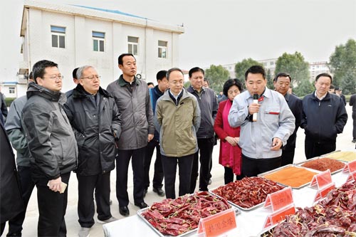 市長鄭連生帶隊觀摩五寨縣辣椒深加工項目。(本報記者 馮曉磊 攝)