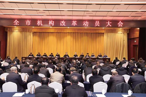 會(huì)議指出,要充分認(rèn)識(shí)深化黨和國家機(jī)構(gòu)改革的重大意義,增強(qiáng)推進(jìn)機(jī)構(gòu)改革工作的思想自覺、政治自覺和行動(dòng)自覺。深化黨和國家機(jī)構(gòu)改革是黨中央作出的重大決策部署,是推進(jìn)國家治理體系、治理能力現(xiàn)代化的一場深刻變革,要充分認(rèn)識(shí)推動(dòng)這場改革的歷史現(xiàn)實(shí)必然性,準(zhǔn)確把握這次改革的正確方向和著力點(diǎn),堅(jiān)持自覺推動(dòng)機(jī)構(gòu)改革工作的政治擔(dān)當(dāng)。我市機(jī)構(gòu)改革的工作重點(diǎn)已經(jīng)進(jìn)入到抓組織實(shí)施的重要階段,當(dāng)前又處歲末年初,頭緒多、任務(wù)重、時(shí)間緊。做好全市機(jī)構(gòu)改革工作,既是一項(xiàng)重大政治任務(wù),也是一次重大政治考驗(yàn)。各級(jí)黨委(黨組)要將其作為頭等大事來謀劃組織落實(shí)推動(dòng),全市各級(jí)各部門要提高政治站位,統(tǒng)一思想認(rèn)識(shí),牢記“四個(gè)意識(shí)”,堅(jiān)定“四個(gè)自信”,做到“兩個(gè)維護(hù)”,領(lǐng)導(dǎo)干部特別是“一把手”既要掛帥又要出征,強(qiáng)化責(zé)任擔(dān)當(dāng),狠抓任務(wù)落實(shí),確保改革落地。