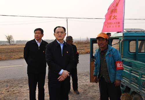 圖為省人大常委會副主任、市委書記李俊明在定襄縣南王鄉(xiāng)湖村護林防火檢查站了解情況。本報記者 劉紀森 攝
