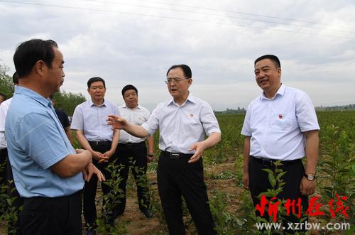 圖為省人大常委會副主任、市委書記李俊明在原平市新原鄉(xiāng)唐林崗村調(diào)研農(nóng)業(yè)產(chǎn)業(yè)結(jié)構(gòu)調(diào)整情況。本報記者劉紀(jì)森攝