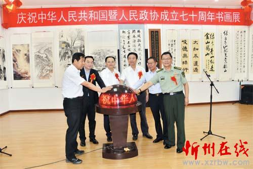 省人大常委會(huì)副主任、市委書記李俊明,省政協(xié)副主席席小軍,市人大常委會(huì)主任王珍,市政協(xié)主席劉鋼柱,市委常委、宣傳部長(zhǎng)陳義青,市委常委、秘書長(zhǎng)崔建新,忻州軍分區(qū)司令員李志強(qiáng),忻州師范學(xué)院院長(zhǎng)張虎芳,副市長(zhǎng)安書田,市政協(xié)副主席王慶榮、高志偉、黃登宇、吳培英,市人大常委會(huì)秘書長(zhǎng)張?zhí)m軍,市政府秘書長(zhǎng)郭寶厚,市政協(xié)秘書長(zhǎng)王志剛,已退休的市政協(xié)老領(lǐng)導(dǎo)范懷成、張明成、楊學(xué)書、王志勇等,太原、陽(yáng)泉、晉中市政協(xié)領(lǐng)導(dǎo)及著名書畫家代表出席開展儀式。忻州籍著名軍旅書畫家郭明高、劉傳光、張全美,國(guó)家一級(jí)美術(shù)師、中國(guó)美術(shù)家協(xié)會(huì)會(huì)員、廣西桂林的龍山農(nóng)先生等應(yīng)邀出席了開展儀式。劉鋼柱宣布書畫展開展,李俊明、席小軍、郭明高、王珍、劉鋼柱、李志強(qiáng)一起觸動(dòng)啟動(dòng)球。王志剛主持開展儀式,高志偉致辭。