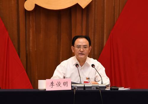 省人大常委會(huì)副主任、市委書記李俊明在中共忻州市委四屆七次全體會(huì)議上講話。本報(bào)記者 劉紀(jì)森 攝