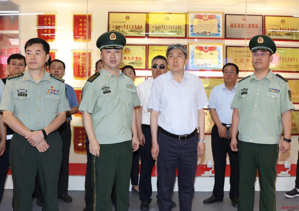 朱曉東慰問(wèn)武警忻州支隊(duì)官兵。范濤 攝 在武警忻州支隊(duì),朱曉東參觀支隊(duì)史展覽館,詳細(xì)了解支隊(duì)歷史沿革和發(fā)展情況。他指出,武警支隊(duì)是一支作風(fēng)優(yōu)良、能吃苦能戰(zhàn)斗能奉獻(xiàn)的隊(duì)伍,感謝大家在聚焦備戰(zhàn)打仗、深化拓展軍事斗爭(zhēng)準(zhǔn)備的同時(shí),積極參與和支持忻州經(jīng)濟(jì)社會(huì)發(fā)展,特別是在防火滅火、應(yīng)急救援、搶險(xiǎn)救災(zāi)中,官兵們第一時(shí)間響應(yīng),不畏艱險(xiǎn)、沖鋒在前,全力幫助處置險(xiǎn)情、整治環(huán)境,用實(shí)際行動(dòng)展現(xiàn)了人民子弟兵的本色擔(dān)當(dāng)。希望廣大官兵繼續(xù)加強(qiáng)訓(xùn)練,時(shí)刻準(zhǔn)備發(fā)揮職能,在保障全市安全穩(wěn)定方面作出更大貢獻(xiàn),在新時(shí)代新征程上再立新功。忻州將堅(jiān)持以習(xí)近平新時(shí)代中國(guó)特色社會(huì)主義思想為指導(dǎo),堅(jiān)定不移支持國(guó)防和軍隊(duì)現(xiàn)代化建設(shè),扎實(shí)推進(jìn)軍民融合發(fā)展,堅(jiān)定不移做好擁軍優(yōu)屬工作,不斷完善退役軍人服務(wù)保障體系,共同譜寫軍政軍民團(tuán)結(jié)新篇章。 駐忻部隊(duì)官兵衷心感謝忻州市各級(jí)黨委、政府和人民群眾對(duì)部隊(duì)建設(shè)的關(guān)心支持,表示要堅(jiān)決貫徹習(xí)近平強(qiáng)軍思想,忠誠(chéng)履職擔(dān)當(dāng),在努力做好部隊(duì)自身建設(shè)的同時(shí),進(jìn)一步密切軍地聯(lián)系,全力以赴支持地方經(jīng)濟(jì)社會(huì)發(fā)展,為建設(shè)宜居宜業(yè)宜創(chuàng)宜游的創(chuàng)新型田園城市作出新的更大貢獻(xiàn)。 (責(zé)任編輯:蔡文斌) |