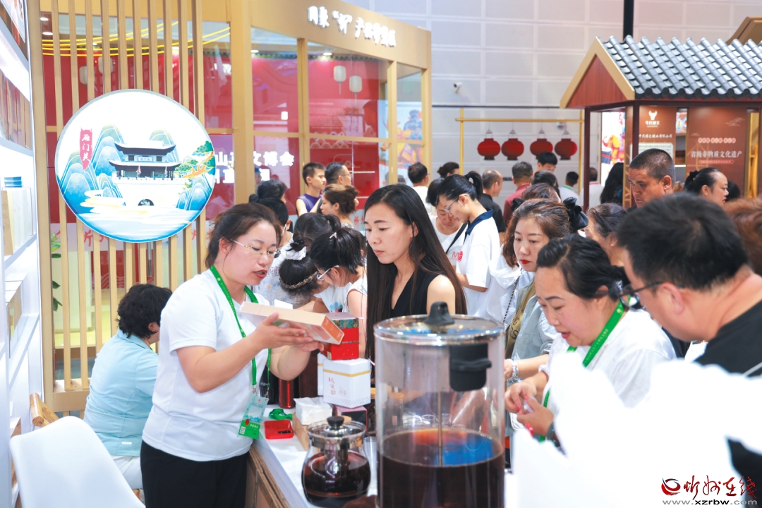 觀眾在第七屆山西文博會(huì)忻州展廳購買特優(yōu)農(nóng)產(chǎn)品。張存良攝